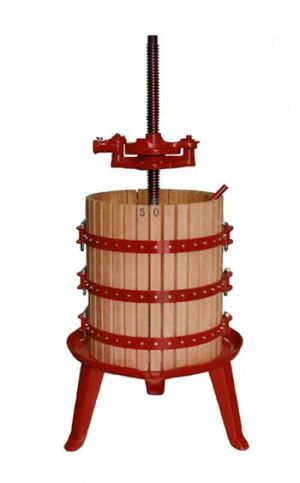 Italiano: cilindro di assi di legno, parte superiore del torchio a vite.