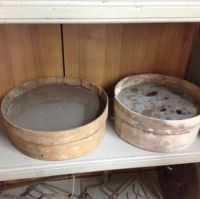 Italiano: crivello, setaccio, arnese tondo composto da un panno (o rete) a maglia larga simile alla stamigna bloccata tra due cerchi solitamente di legno e usato principalmente per separare la farina dalla crusca o la pula dai semi in generale.