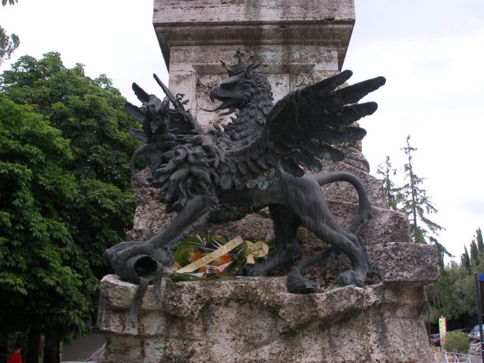 Il monumento è posto di fronte all’ingresso dei Giardini del Frontone, realizzato da Giuseppe Fringuelli, fu inaugurato nel 1909 e ricorda i caduti nella resistenza all’avanzata delle truppe di papa Pio IX guidate dal generale Schmidt.